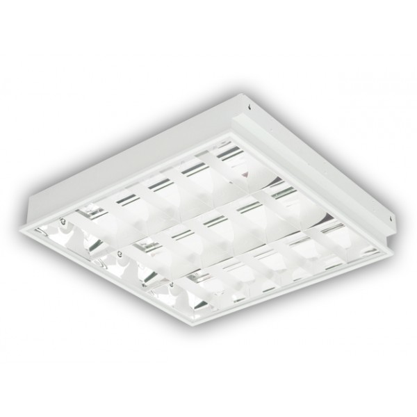 ACL.1836 - sản phẩm máng đèn huỳnh quang âm trần, thanh ngang bằng nhôm sọc, thanh dọc bằng nhôm phản quang, có vòm ở lưng bóng bằng nhôm phản quang.