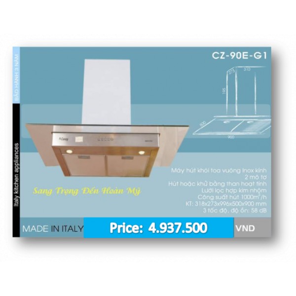 cao, có mặt...CZ-90E-G1, Máy hút mùi Canzy - sang trọng đến hoàn mỹ.