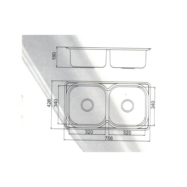SH.2H.760 - sản phẩm chậu rửa Inox mang nhãn hiệu Sơn Hà - loại 2 hố bồn rửa, chiều dài chậu là 756 mm
