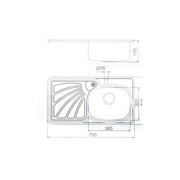 SH.1HB.795 - sản phẩm chậu rửa Inox mang nhãn hiệu Sơn Hà - loại 1 bồn rửa, chiều dài chậu là 795 mm
