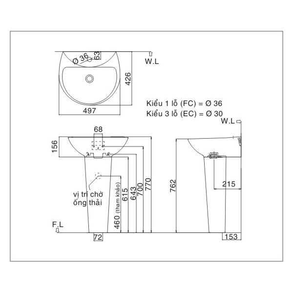 Giá trên áp dụng cho sản phẩm màu trắng (chưa bao gồm chân chậu), đã bao gồm thuế, mua từ 02 bộ trở lên miễn phí vận chuyển trong nội thành Hà Nội với bán kính 15km kể từ vị trí Công ty.