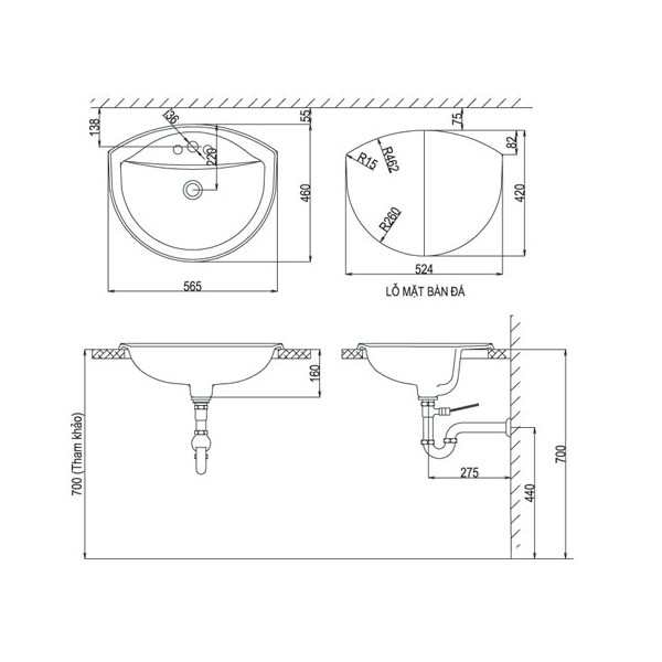 L-2396V được sản xuất dùng làm chậu rửa để bàn.