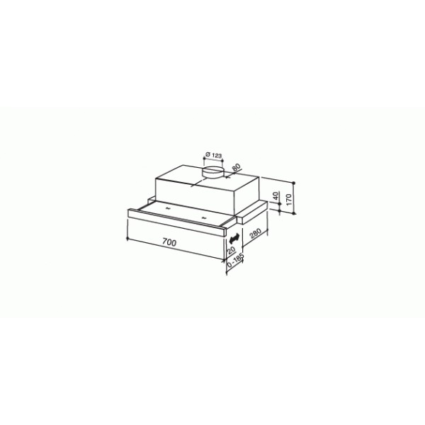- Sản phẩm gắn âm kệ bếp, có thể kéo ra tăng diện tích hút.