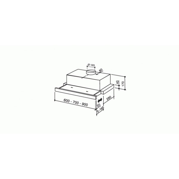 - Sản phẩm gắn âm kệ bếp, có thể kéo ra tăng diện tích hút.