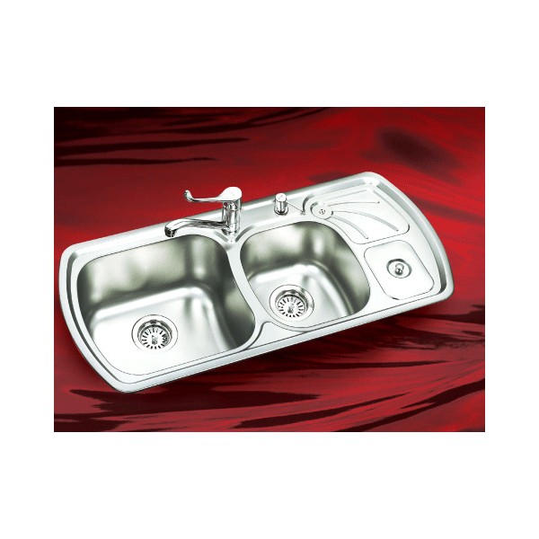 M.MS1004 là sản phẩm chậu rửa 2 hố, 1 bàn, 1 hố đụng rác, đúc liền nhãn hiệu MALLOCA.