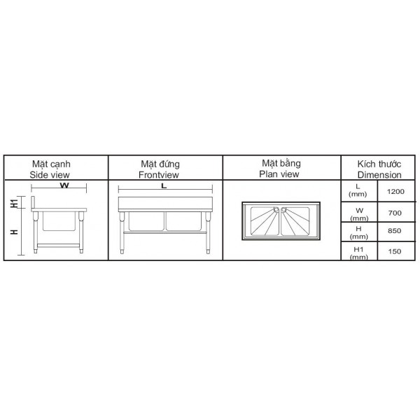 cao, có mặt...Chậu rửa công nghiệp được làm từ chất liệu Inox SUS304 Nhật Bản.