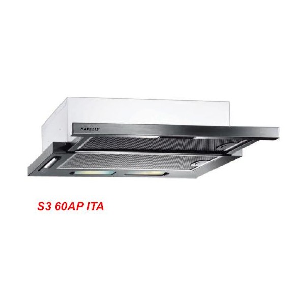 Máy hút khỏi kiểu rút 2 mô tơ, mặt trước bằng Inox, lưới lọc nhôm có than hoạt tính, công suất hút 450m3/h, kích thước 60cm.