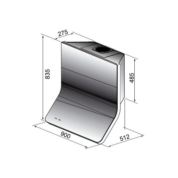 Máy hút khói kiểu kính cong, mặt bằng kính chịu lực, lưới lọc nhôm có than hoạt tính, công suất hút 850m3/h, kính thước 90cm.