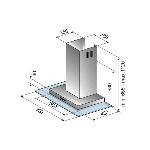 cao, có mặt...Máy hút chụp Inox, kính cong. Mô tơ tua bin, hút xả. Lưới lọc nhôm, có than hoạt tính. Công suất hút 850m3/h. Kính thước 90cm.
